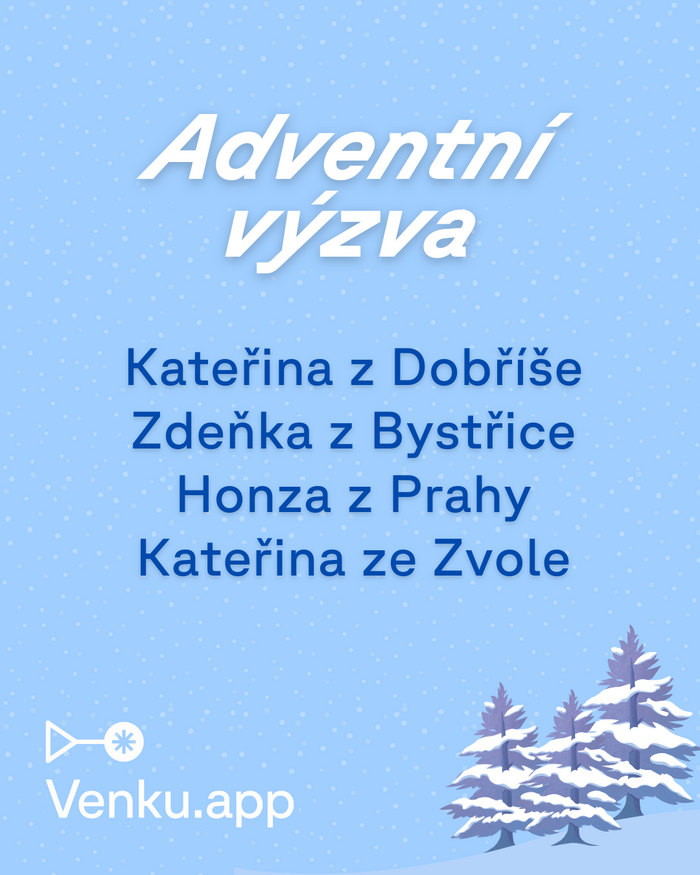 Adventní výzvy Venku.app se zúčastnilo celkem 14 lidí. Společně splnili 92 adventních úkolů, které měly za cíl vás pobavit, podpořit fyzickou kondici i předvánoční náladu a hlavně zajistit, abyste byli venku.
